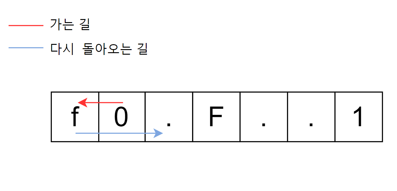 아래 그림을 보면 0에서 출발하여 f 열쇠를 얻고 다시 0을 지나 .으로 가야한다.