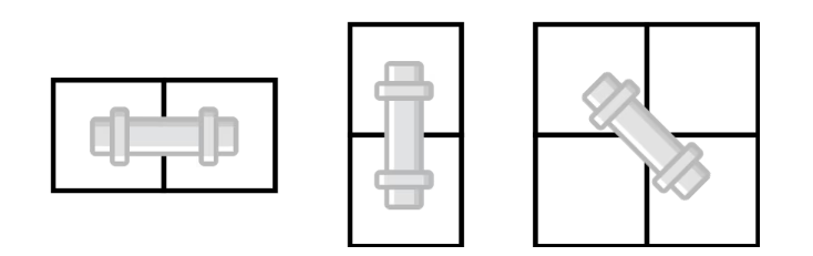 오늘은 집 수리를 위해서 파이프 하나를 옮기려고 한다. 파이프는 아래와 같은 형태이고, 2개의 연속된 칸을 차지하는 크기이다.